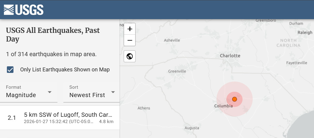 Another Earthquake Struck South Carolina Between Charlotte and Columbia