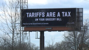 The billboards, which feature bold messages opposing U.S. tariffs on Canadian goods, are funded by the Canadian government.