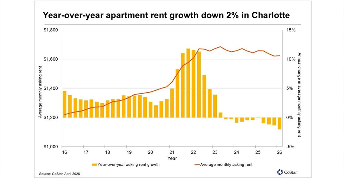 Charlotte Apartment Rents Post Steepest Decline Since 2010 Amid Supply Surge