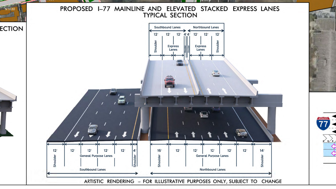 Charlotte and NCDOT officials are currently weighing some dramatic options for I-77, including possible double-decker express toll lanes.