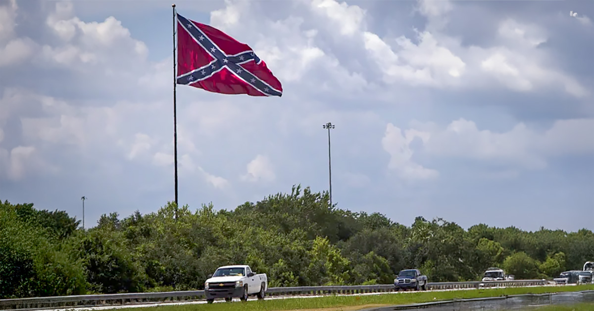 The dispute centers on a 120-foot flagpole erected on less than an acre near Teaberry Road. The flag first appeared along the interstate in 2022.
