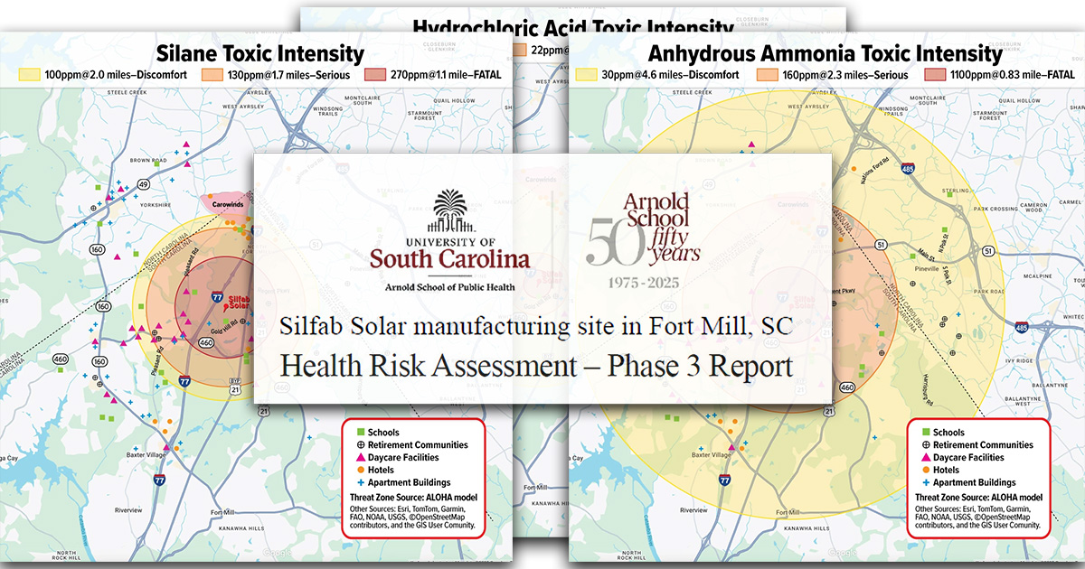 A new University of South Carolina (USC) health study is now raising alarms about potential chemical-release risks from the under-construction Silfab factory in Fort Mill.
